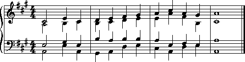 When the above data is run through the chorck command, four errors will be detected. In the example output below, blue text indicates the additional text added by the chorck command, and the bold red text indicates where the problem occurs. Dark red indicates the notes preceding rule-violating movements. chorck file.krn | hgrep Warning -mbWhich will return this result for the above example input: Metrical considerationsChorck checks successive sonorities for rule violations; however, application of rules are also related to the metrical pattern. For example, The following example will pass all of the tests: