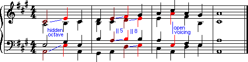 hidden-fifths, voice-crossing, and open-spacing rules are