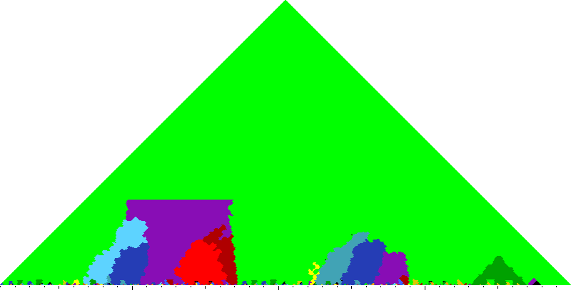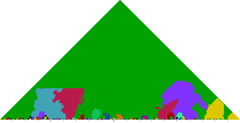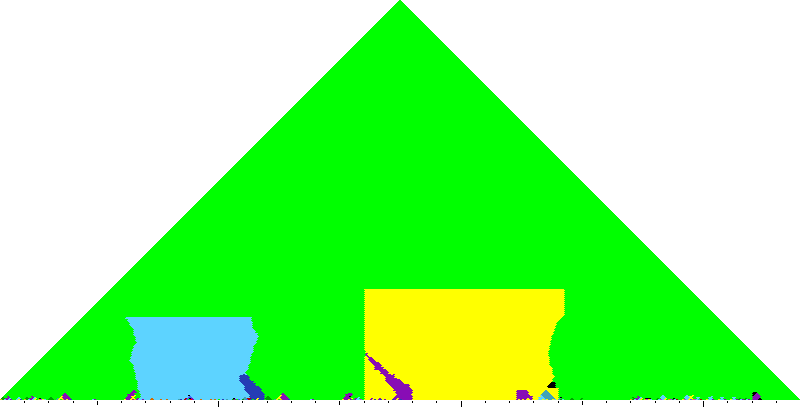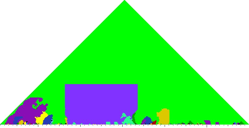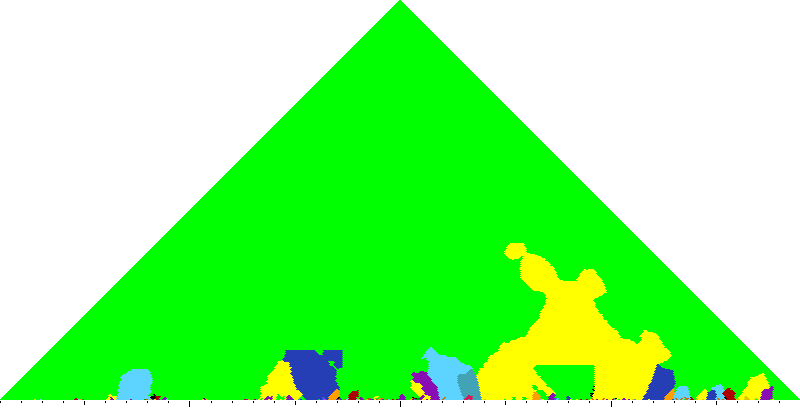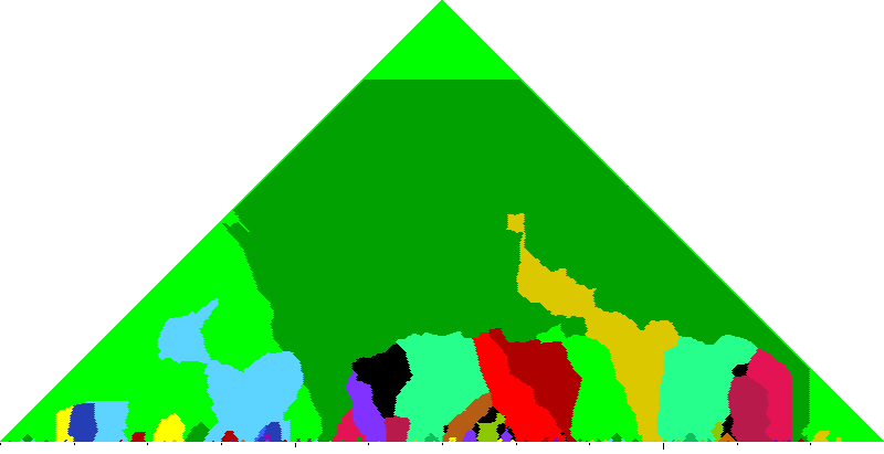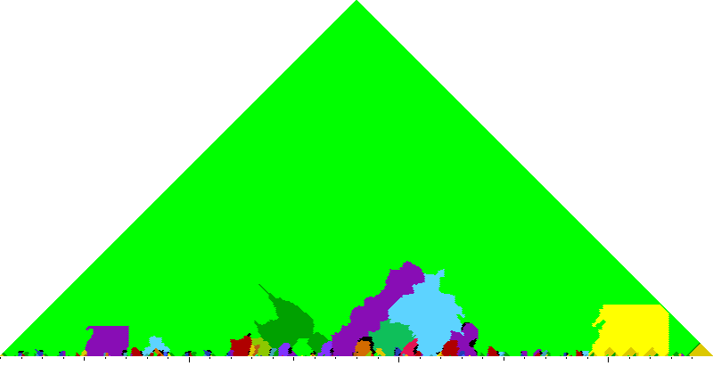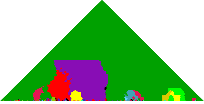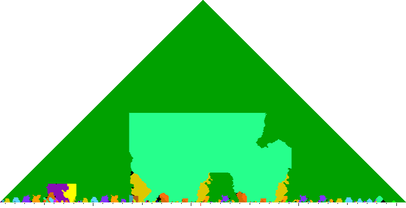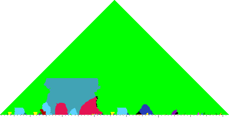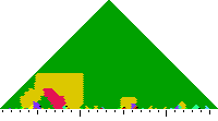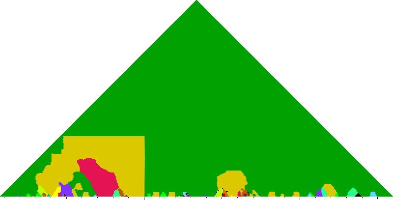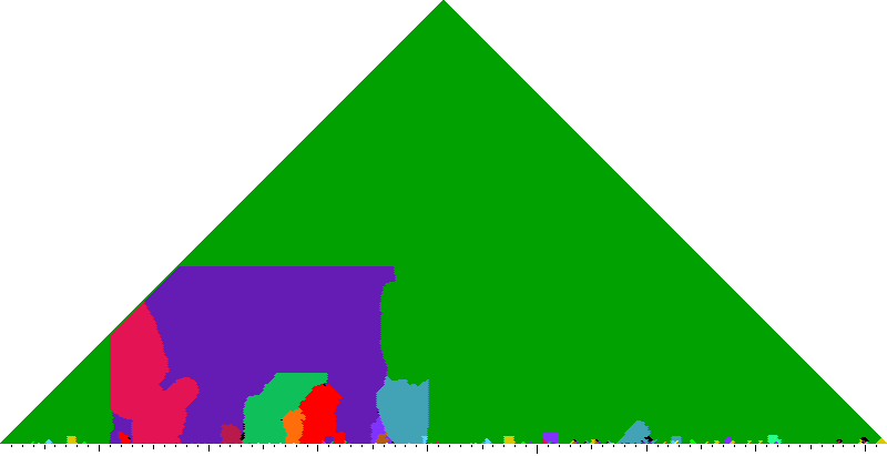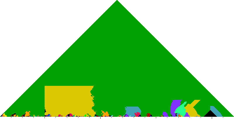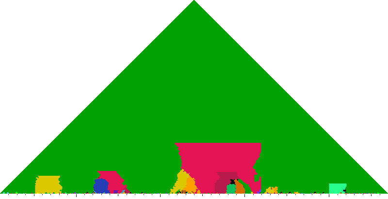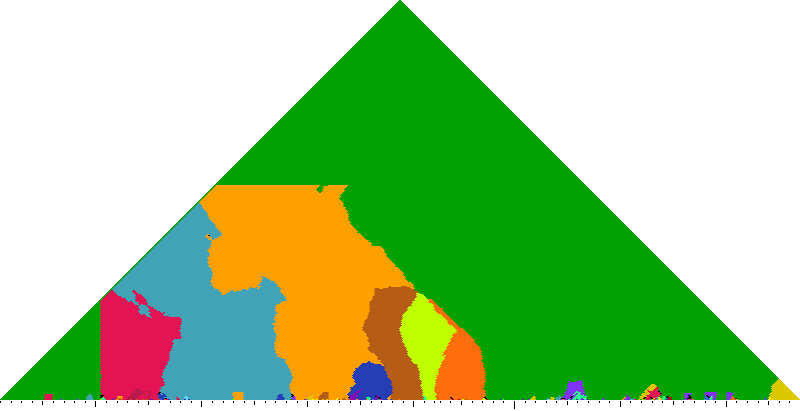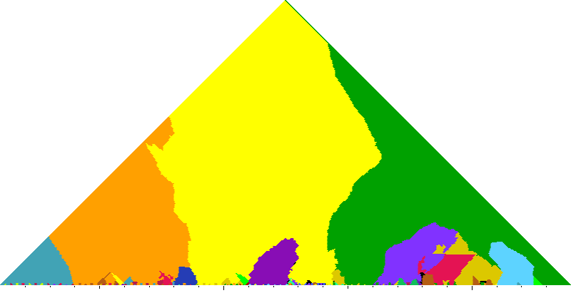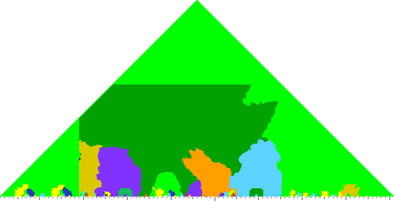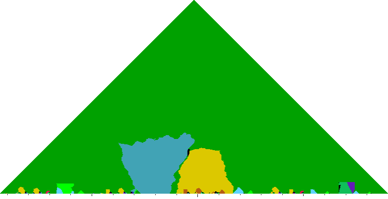 The following keyscapes are colored relative to the tonic key of the movement: green = tonic, light blue = dominant, yellow = subdominant, purple = submediant (or relative minor for a major tonic), red = median (or relative major for a minor tonic), dark blue = supertonic (or dominant of the dominant), sea green = Neapolitan and subtonic = orange (or subdominant of the subdominant). Click here to view keyscapes colored without transposing to C.