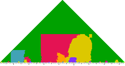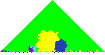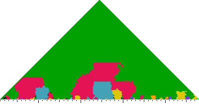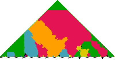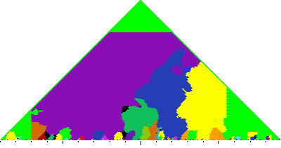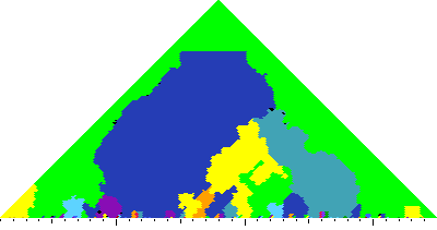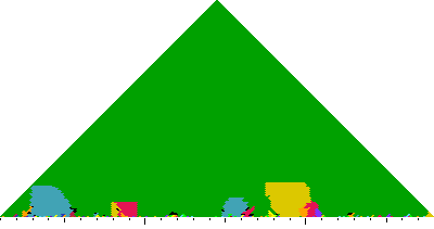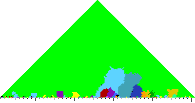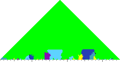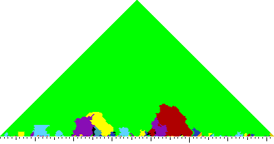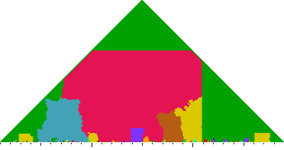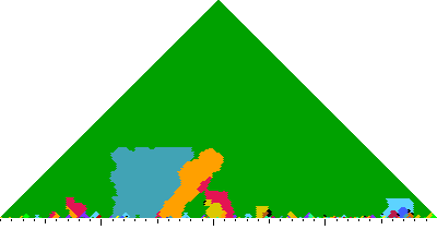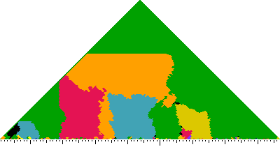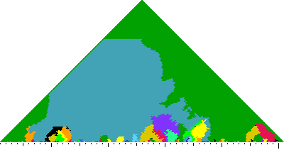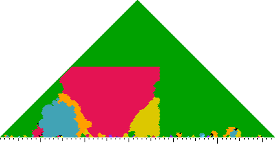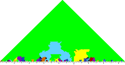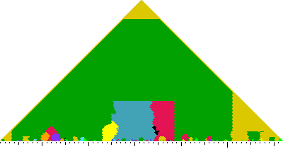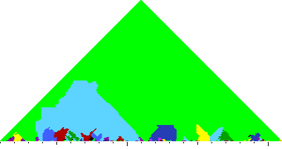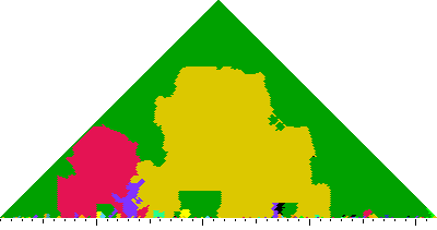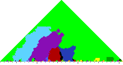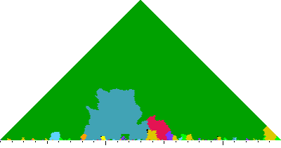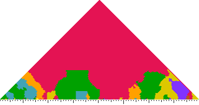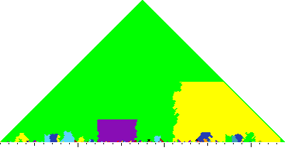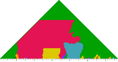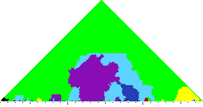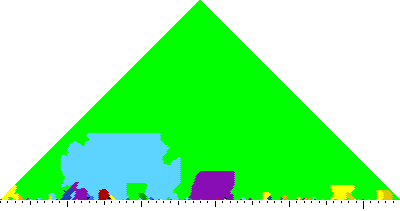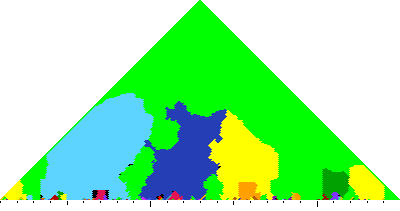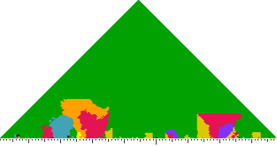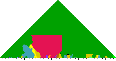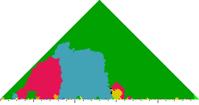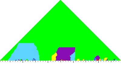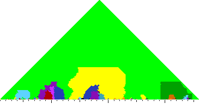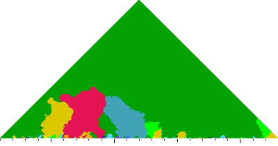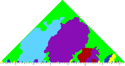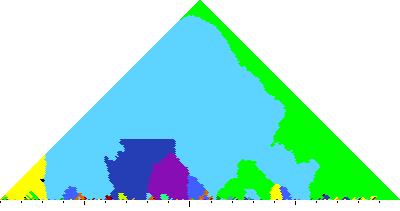 The following keyscapes are colored relative to the tonic key of the piece: green = tonic, light blue = dominant, yellow = subdominant, purple = submediant (or relative minor for a major tonic), red = median (or relative major for a minor tonic), dark blue = supertonic (or dominant of the dominant), and subtonic = orange (or subdominant of the subdominant).