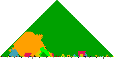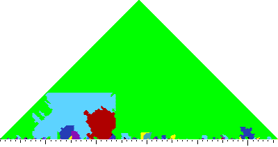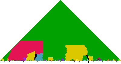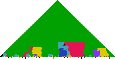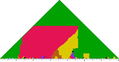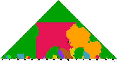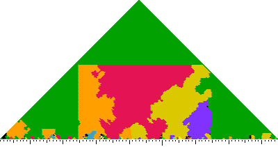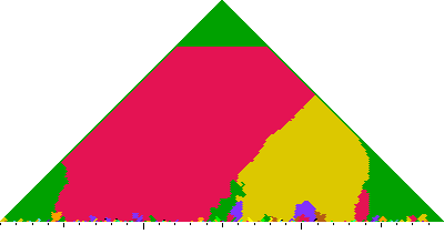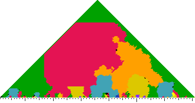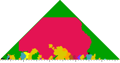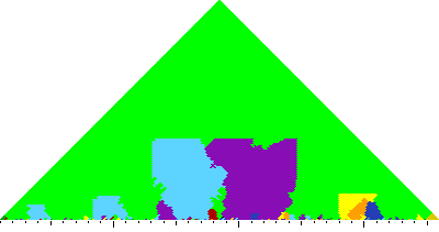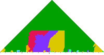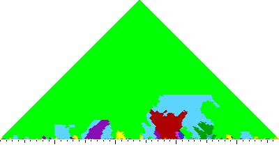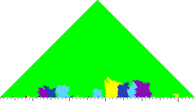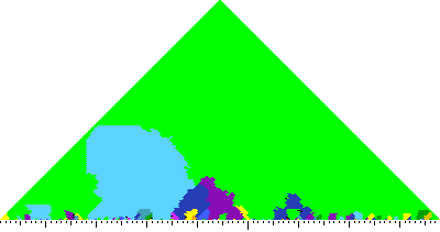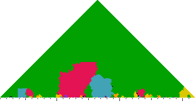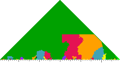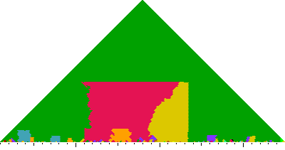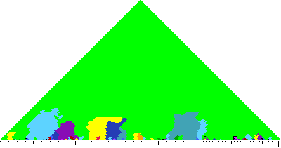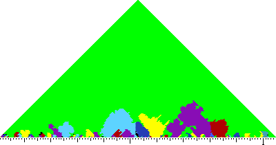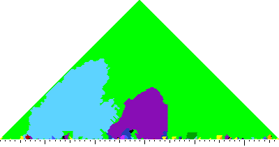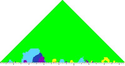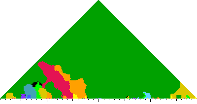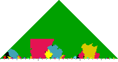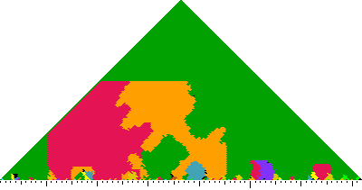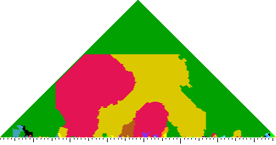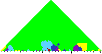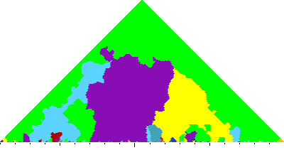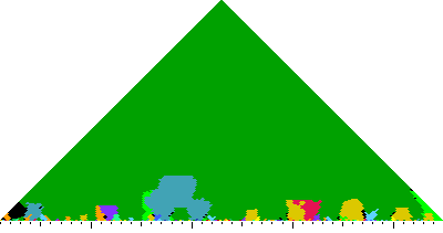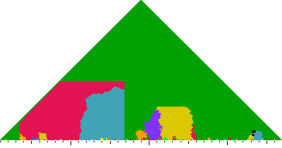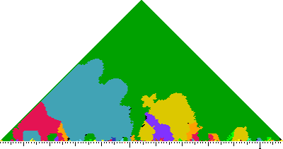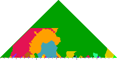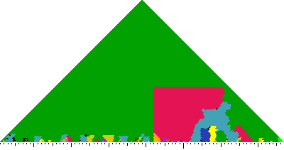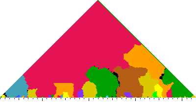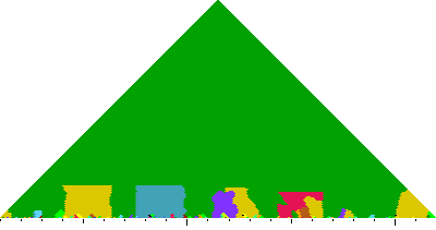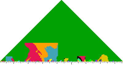 The following keyscapes are colored relative to the tonic key of the piece: green = tonic, light blue = dominant, yellow = subdominant, purple = submediant (or relative minor for a major tonic), red = median (or relative major for a minor tonic), dark blue = supertonic (or dominant of the dominant), and subtonic = orange (or subdominant of the subdominant).