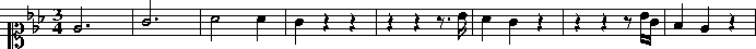 This data can then be sent through hum2abc to generate ABC+ data which can be printed to PostScript or Encapsulated PostScript using abcm2ps which can then be converted to various image formats, such as this GIF file: